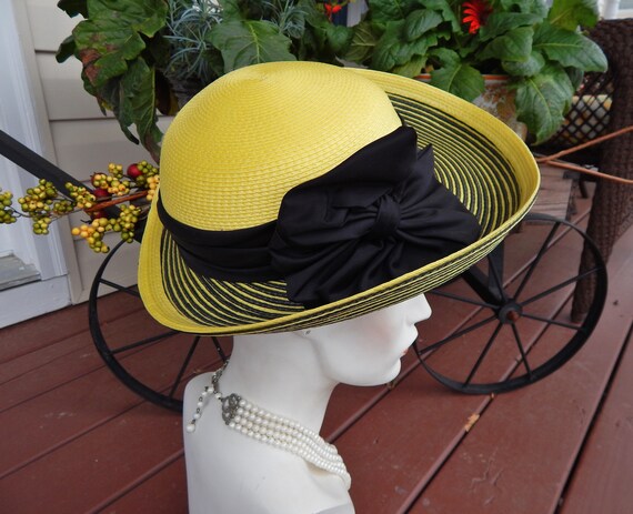 Yellow Hat Black Bow Sylvia Yellow Hat Wide Brim Hat Etsy Uk