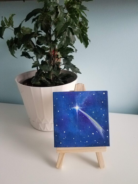 Original Small Acrylic Painting Shooting Star In The Galaxy Etsy